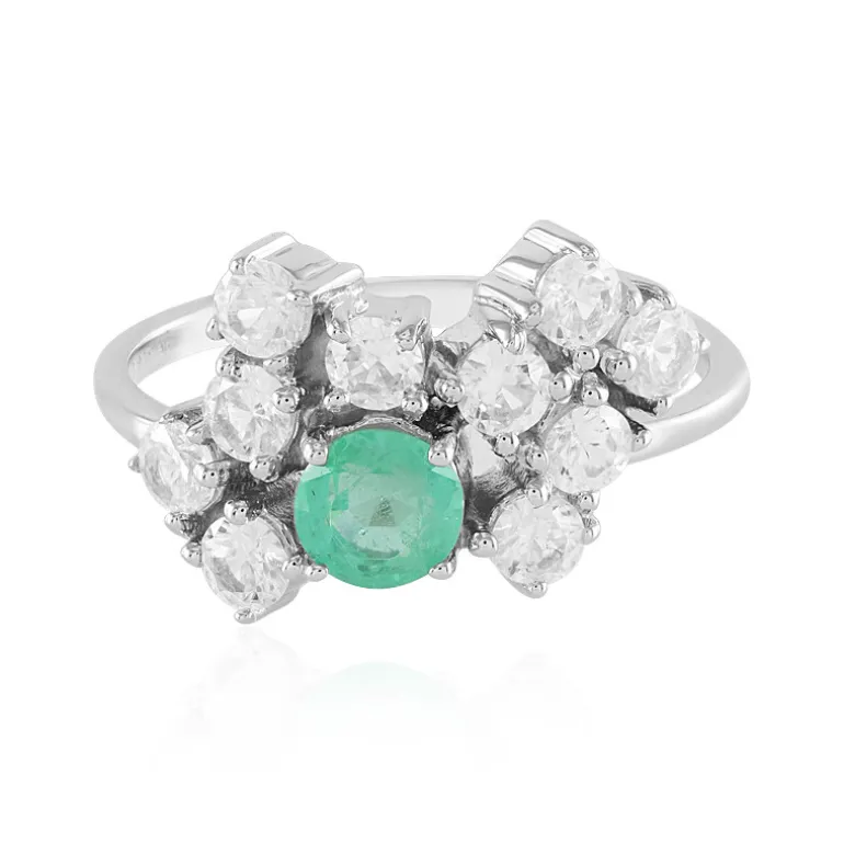 Entdecken Sie die Anziehungskraft russischer Eleganz mit diesem auffälligen Silberring, in dessen Mitte ein russischer Smaragd von 0,436 ct liegt, umgeben von einem Heiligenschein aus 10 schimmernden Zirkonen aus Kambodscha von insgesamt 1,473 ct. Der fachmännisch aus 925er Sterlingsilber gefertigte Ring ist eine raffinierte Mischung aus klassischem Charme und modernem Flair. Das zeitlose Design dieses Schmuckstücks eignet sich perfekt, um Ihrer formellen Kleidung einen leuchtenden Farbakzent zu verleihen oder Ihren Alltagslook aufzuwerten.