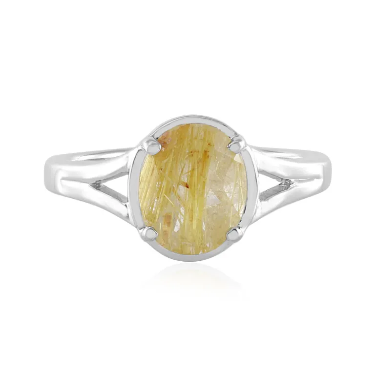 Schmücken Sie Ihre Hand mit dem Glanz Brasiliens mit diesem atemberaubenden Ring aus 925er Sterlingsilber, der einen Rutilquarz im Ovalschliff mit faszinierenden goldenen nadelartigen Einschlüssen zeigt. Der 1,575-karätige Edelstein misst etwa 9×7 mm und wird in einer eleganten, modernen Fassung gehalten. Dieser einzigartige Ring ist perfekt geeignet, um Ihrem Alltagsoutfit einen Hauch von Eleganz zu verleihen oder bei gesellschaftlichen Anlässen für Gesprächsstoff zu sorgen. Kombinieren Sie ihn mühelos sowohl mit legerer als auch mit formeller Kleidung für einen strahlenden, auffallenden Look.
