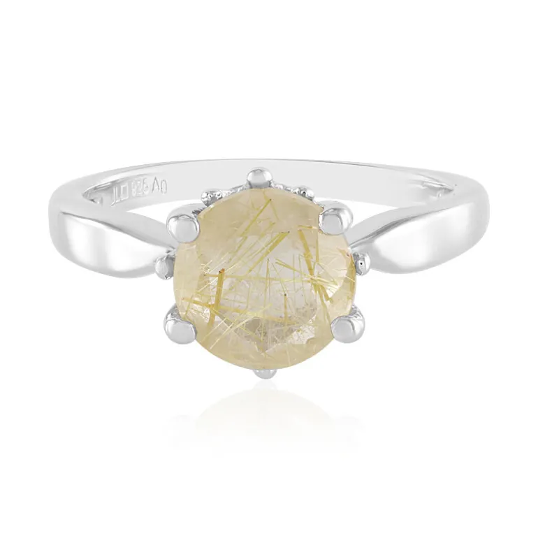 Entdecken Sie die natürliche Schönheit dieses Ringes aus brasilianischem Rutilquarz mit seinen atemberaubenden goldenen nadelartigen Einschlüssen. Der runde Quarz von 1,695 Karat ist fachmännisch in 1,75 g platiniertes 925er Sterlingsilber gefasst und schafft ein faszinierendes Spiel aus Licht und Luxus, das Ihren Finger schmückt. Das einzigartige Design und der strahlende Farbton des Quarzes machen ihn zu einem idealen Gesprächsanlass bei jeder Veranstaltung.