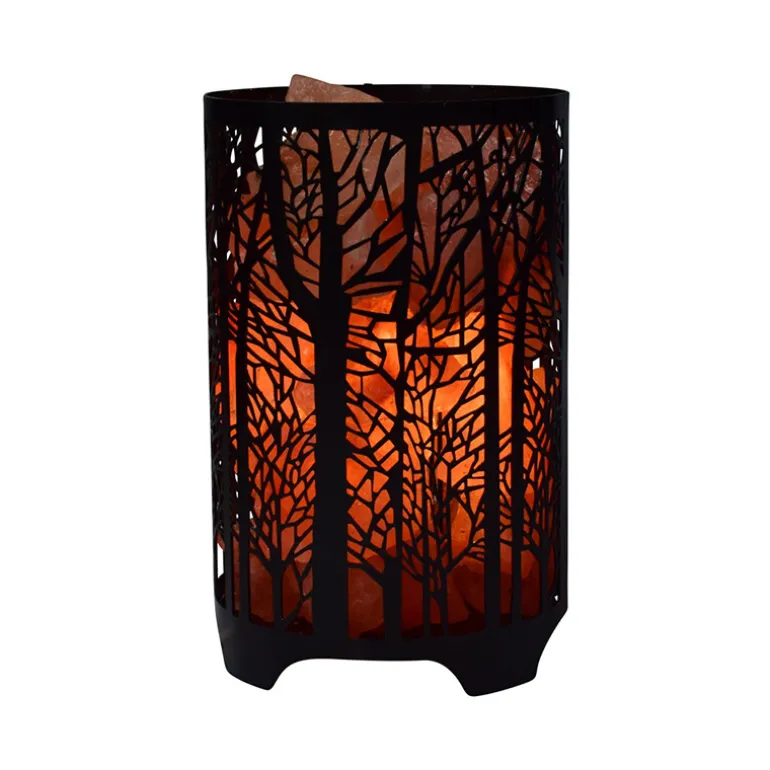 Tauchen Sie Ihren Raum in das warme, beruhigende Licht unserer Forest Silhouette Himalayan Salt Lamp. Diese perfekt gefertigte Lampe kombiniert die natürlichen Vorteile von reinem Himalaya-Salz mit der ruhigen Schönheit eines Waldes in der Abenddämmerung. Ideal, um ein ruhiges Ambiente in Ihrem Wohnzimmer, Büro oder als Nachtlicht in Ihrem Schlafzimmer zu schaffen. Die Silhouette der Bäume, die die Lampe wirft, schafft eine friedliche Szene, die jede Einrichtung ergänzt. Diese Salzlampe ist nicht nur eine Quelle sanfter Beleuchtung, sondern soll auch das Wohlbefinden fördern, indem sie die Luft reinigt und elektromagnetische Strahlung reduziert. Mit dieser Lampe können Sie sich in die Gelassenheit der Natur zurückziehen, direkt zu Hause.