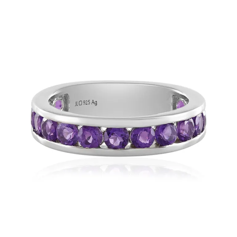 Entdecken Sie die Faszination dieses Silberrings mit Amethysten aus Sambia. 15 Amethysten im Rundschliff mit einem Gesamtgewicht von 1,4 Karat sind elegant in ein Band aus platiniertem 925er Sterlingsilber gefasst. Die leuchtend violetten Edelsteine, die aus den reichen Minen Sambias stammen, bieten eine königliche Ästhetik. Die Größe von 20×20 mm garantiert einen bequemen Sitz für das tägliche Tragen oder besondere Anlässe. Kombinieren Sie diesen Ring mit einem neutralen Outfit, damit die satten Farbtöne der Amethyste zur Geltung kommen, und machen Sie ihn zu einer raffinierten Wahl für Bürokleidung und Abendveranstaltungen.