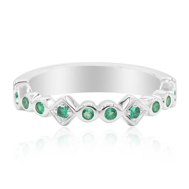 Entdecken Sie die schlichte Eleganz dieses sambischen Smaragdrings, der aus hochwertigem 925er Sterling Silber gefertigt ist. Mit einem Gesamtkaratgewicht von 0,09 ct bietet dieses Stück eine einzigartige Anordnung von zehn lebhaften Smaragden im Rundschliff. Das schlichte Design und die klassische Ausstrahlung der Smaragde harmonieren perfekt miteinander und machen diesen Ring zu einer idealen Wahl sowohl für den Alltag als auch für besondere Anlässe. Er ist das i-Tüpfelchen für Ihr Geschäftsoutfit oder ein subtiler Hauch von Luxus für einen zwanglosen Ausflug.