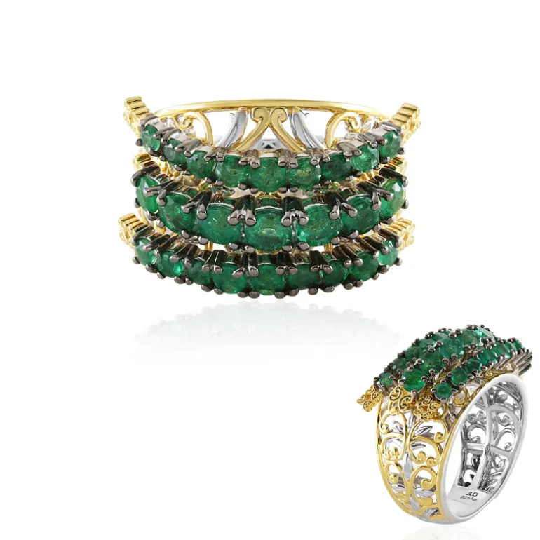 Dieser sorgfältig gearbeitete Ring besteht aus einer Kaskade sambischer Smaragde mit einem Gesamtgewicht von 1,863 Karat, gefasst in hochwertigem 925er Sterlingsilber mit einem Gewicht von ca. 7,55 g. Die strahlenden Grüntöne der Edelsteine im Rundschliff sind in einem atemberaubenden, geschichteten Design angeordnet, das Raffinesse und Eleganz ausstrahlt. Dieser Edelsteinring ist ideal, um jedem Outfit einen Hauch von Klasse zu verleihen. Er eignet sich perfekt für besondere Anlässe oder als opulente Ergänzung zu Ihrem Alltagsoutfit.