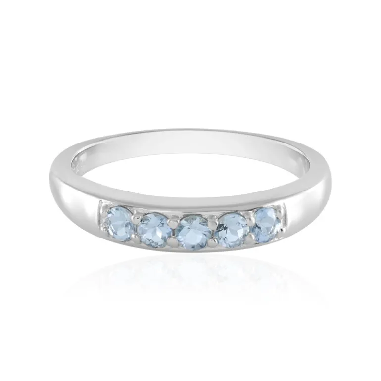 Entdecken Sie die subtile Eleganz dieses brasilianischen Santa Maria Aquamarinrings. Fünf Aquamarine im Rundschliff mit insgesamt 0,41 Karat sind in platiniertes 925er Sterlingsilber eingebettet und bilden eine harmonische Mischung aus Farbe und Glanz. Dieses Schmuckstück mit einem Gewicht von ca. 2,66 Gramm eignet sich perfekt für einen Hauch von Raffinesse im Alltag oder für besondere Anlässe, die nach einem ruhigen und doch auffälligen Accessoire verlangen. Die ruhigen blauen Farbtöne machen es zu einem idealen Begleiter sowohl für zwanglose Ausflüge als auch für berufliche Anlässe.