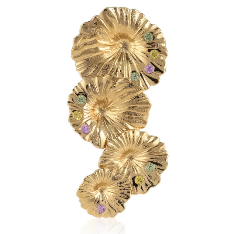 Tauchen Sie ein in die lebendige Welt der Saphire mit unserem Multicolor Sapphire Anhänger. Aus jeder goldenen Blattform strahlen die zarten Farben von grünen, gelben und rosafarbenen Saphiren, die aus den üppigen Landschaften von Madagaskar stammen. Die rund geschliffenen Edelsteine mit einem Gesamtgewicht von 0,3 Karat sind in hochwertiges 925er Sterlingsilber mit einer exquisiten Vergoldung gefasst und wiegen etwa 8,18 Gramm. Mit einer Größe von 47×21 mm ist dieses Schmuckstück der MONOSONO COLLECTION ein Statement für die Schönheit der Natur und die handwerkliche Kunstfertigkeit. Er ist ein vielseitiges Accessoire für viele Gelegenheiten und eignet sich perfekt, um einem neutralen Outfit einen Farbakzent zu verleihen oder ein Sommerkleid zu ergänzen.