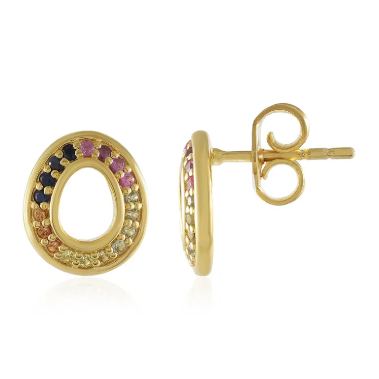 Bunte Saphir-Ohrringe aus vergoldetem Silber