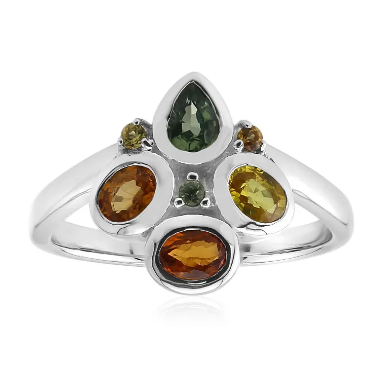 Entdecken Sie die lebendige Anziehungskraft dieses Madagaskar Multi-Color Sapphire Silberrings, bei dem jeder Saphir seine eigene Geschichte erzählt. Mit einem zentralen Tropfen und umliegenden ovalen und runden Saphiren in satten Herbsttönen, die in hochglänzendes platiniertes Sterlingsilber gefasst sind, ist dieser Ring mit einem Gesamtgewicht von 0,841 Karat sorgfältig gefertigt, um zu glänzen. Dieser Ring ist ideal, um einem einfarbigen Outfit einen Farbtupfer zu verleihen oder ein Gala-Abendkleid zu ergänzen. Er ist eine vielseitige Ergänzung für jede Schmucksammlung.