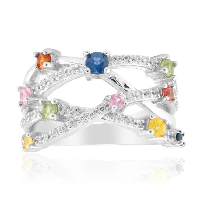 Multicolor Saphir Sterling Silber Ring