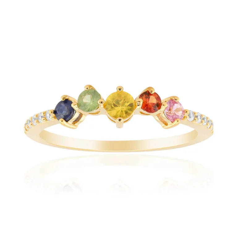 Multicolor Saphir Goldplattierter Silberring