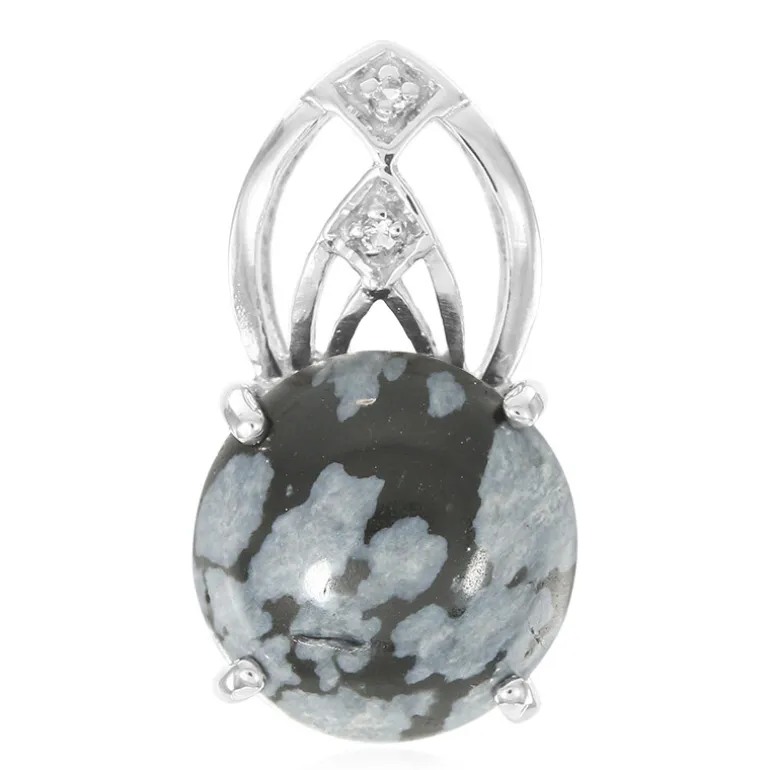 Entdecken Sie die Eleganz dieses Snowflake Obsidian-Anhängers aus den USA. Der runde Cabochon von 3,22 Karat zeigt ein schillerndes Muster, das von zwei weißen Topas-Akzenten ergänzt wird. Der Anhänger aus 925er Sterlingsilber ist perfekt, um jedem Outfit einen Hauch von Raffinesse zu verleihen. Er ist sowohl für den Tag als auch für den Abend geeignet und lässt sich wunderbar mit einer schlichten Silberkette kombinieren, aber auch als Statement-Stück für einen Abend.