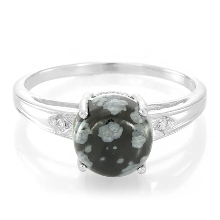 USA Schneeflocke Obsidian & Zirkon Silber Ring, 1,83ct