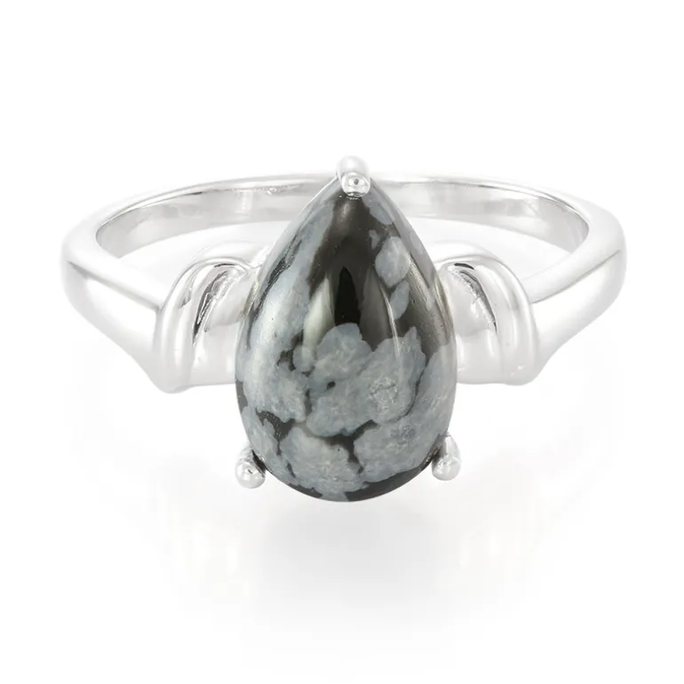 Schneeflocke Obsidian Tropfen 925 Silber Ring, USA 3.55ct