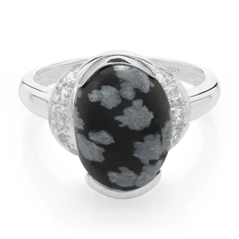 Einzigartiger Schneeflocken-Obsidian-Silberring, USA 3,31 ct