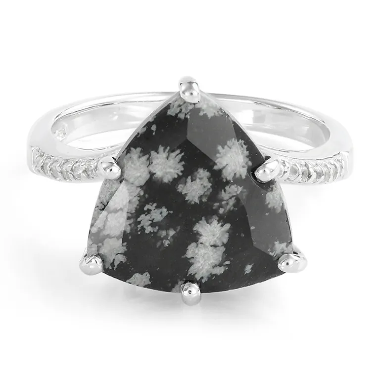Dieses bezaubernde Stück besteht aus einem atemberaubenden 4,09-karätigen Schneeflocken-Obsidian mit einem einzigartigen Trilliant-Schliff, der die Essenz einer winterlichen Landschaft einfängt. Der aus den USA stammende Edelstein wird durch glitzernde weiße Topas-Akzente von insgesamt 0,076 ct aus Brasilien wunderbar ergänzt. Der Ring ist aus hochwertigem 925er Sterling Silber mit einem Gewicht von ca. 2,82 g gefertigt, was die natürliche Schönheit des Steins unterstreicht. Perfekt, um Ihrer Abendgarderobe einen Hauch von Eleganz zu verleihen oder Ihr tägliches Ensemble zu bereichern, strahlt dieser Ring einen zeitlosen Charme aus, der zu jedem Anlass passt.