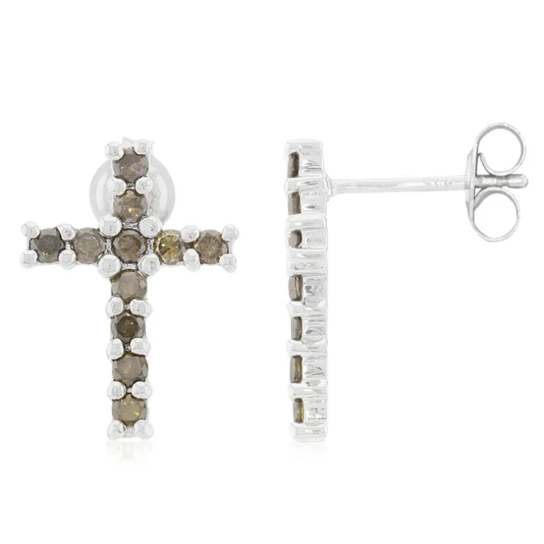 0,78ct Chocolate Diamant Platinierte Silber Ohrringe
