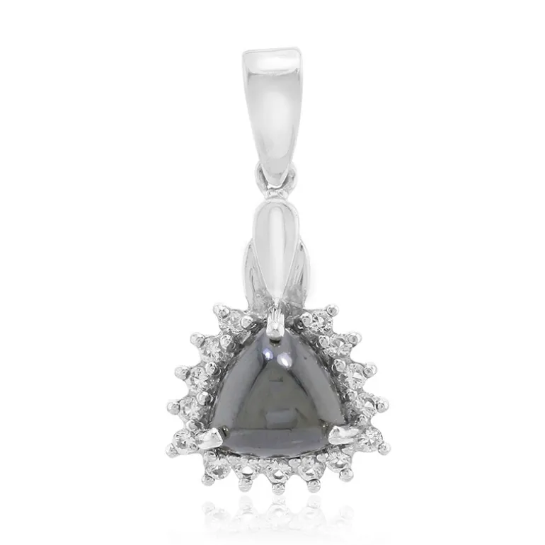 Trilliant Schwarzer Hämatit & Weißer Topas Silber-Anhänger