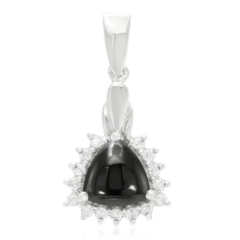 Trilliant Schwarzer Hämatit & Zirkon Silber-Anhänger, 3,09ct