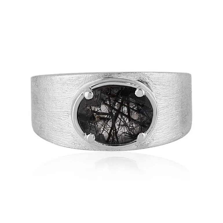 Entdecken Sie die Mystik dieses Rutilquarzrings aus Sri Lanka, der mit einem 1,58 Karat schweren schwarzen Edelstein mit einzigartigen Einschlüssen ein fesselndes Muster bildet. Eingebettet in platiniertes 925er Sterling Silber, bietet dieses Stück einen Edelstein im Ovalschliff, der elegant von einem strukturierten Ringband umrahmt wird. Ideal, um Ihrer Abendgarderobe einen Hauch von Raffinesse zu verleihen, oder als Statement-Accessoire für die Eleganz des Alltags.