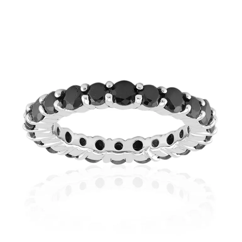 Entdecken Sie die Anziehungskraft dieses schicken Silberrings mit schwarzem Spinell – ein Muss für jede Schmucksammlung. Der Ring zeigt eine schimmernde Reihe schwarzer Spinelle, die in elegantes Silber gefasst sind und einen auffälligen Kontrast bilden. Dieser Ring eignet sich perfekt, um Ihrer Abendgarderobe einen Hauch von Raffinesse zu verleihen, und ist vielseitig genug für formelle Anlässe und alltägliche Eleganz. Kombinieren Sie ihn mit einem kleinen schwarzen Kleid für maximale Wirkung.