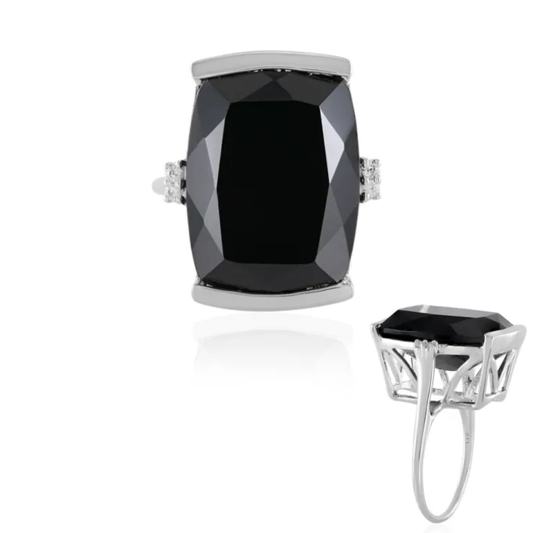 Entfesseln Sie die Anziehungskraft der Dunkelheit mit diesem auffälligen Ring, der einen großen schwarzen Spinell aus Madagaskar mit 27,414 Karat im Antikschliff enthält. Flankiert von funkelnden Zirkon-Akzenten aus Kambodscha mit einem Gesamtgewicht von 0,081 ct, wird die kühne Silhouette des Mittelstücks perfekt durch 925er Sterling Silber ergänzt. Mit seinen großzügigen Proportionen und dem schimmernden Lichtspiel ist dieses Schmuckstück das ultimative Statement der Raffinesse, ideal für glamouröse Abende oder als kraftvoller Akzent für Ihren Alltagsstil.