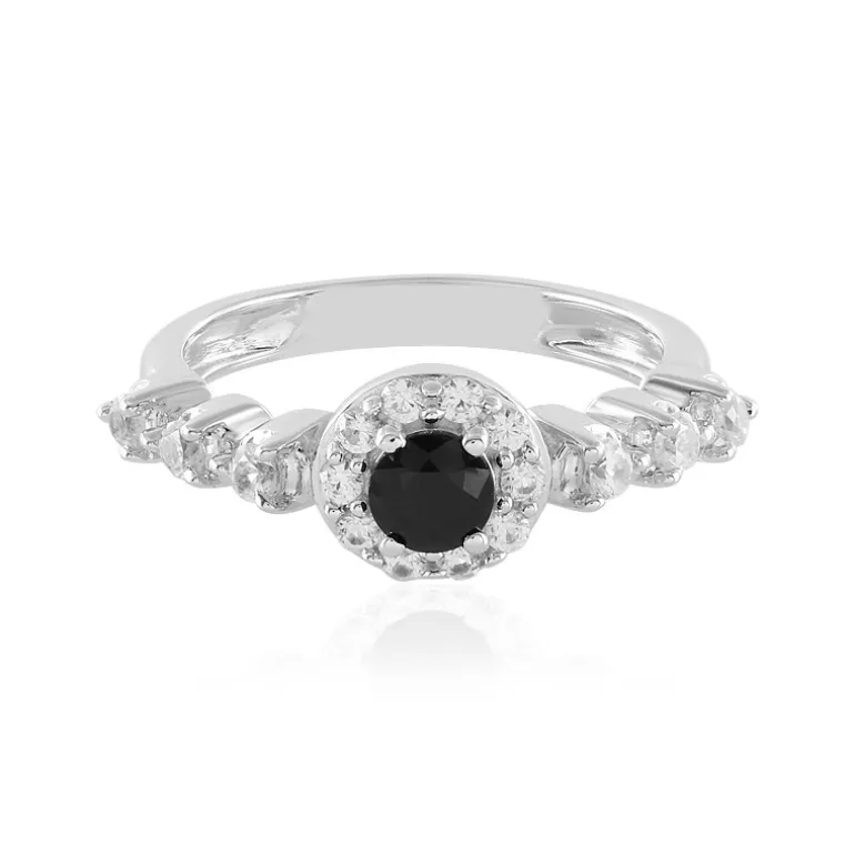 Madagaskar Schwarzer Spinell & Zirkon Silber Ring, 0,70 ct