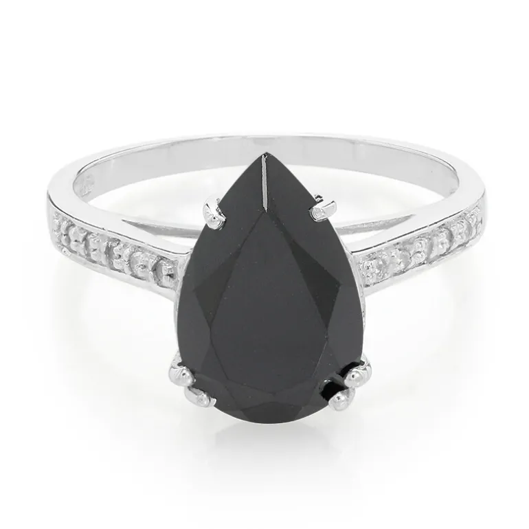 Ein Meisterwerk der Kontraste: Dieser Ring präsentiert einen atemberaubenden schwarzen Spinell aus Madagaskar im Tropfenschliff von 3,19 Karat, eingefasst in elegantes 925er Sterlingsilber. Um den zentralen Edelstein herum sind zehn funkelnde weiße Topase aus Brasilien angeordnet, die ein subtiles Funkeln hinzufügen. Das Gesamtgewicht des Rings beträgt 3,25 Karat und ist auf einem 26×20 mm großen Band schön ausgewogen. Er eignet sich perfekt für Abendveranstaltungen und lässt sich hervorragend mit einfarbigen oder farbenfrohen Outfits kombinieren und verleiht jedem Anlass einen Hauch von Eleganz.