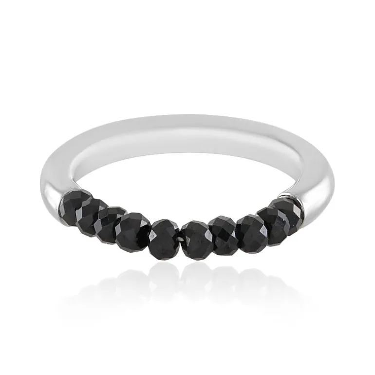 Dieser schicke Ring mit schwarzem Spinell besticht durch sein modernes Design, eingefasst in poliertes Sterlingsilber. Das Band ist mit facettierten Spinell-Edelsteinen verziert, die einen geheimnisvollen Charme ausstrahlen, perfekt für alle, die eine schlichte, moderne Ästhetik schätzen. Dieser Ring ist ideal für den Alltag oder als dezenter Akzent für die Abendgarderobe und verspricht eine vielseitige Ergänzung für jede Schmucksammlung zu sein.