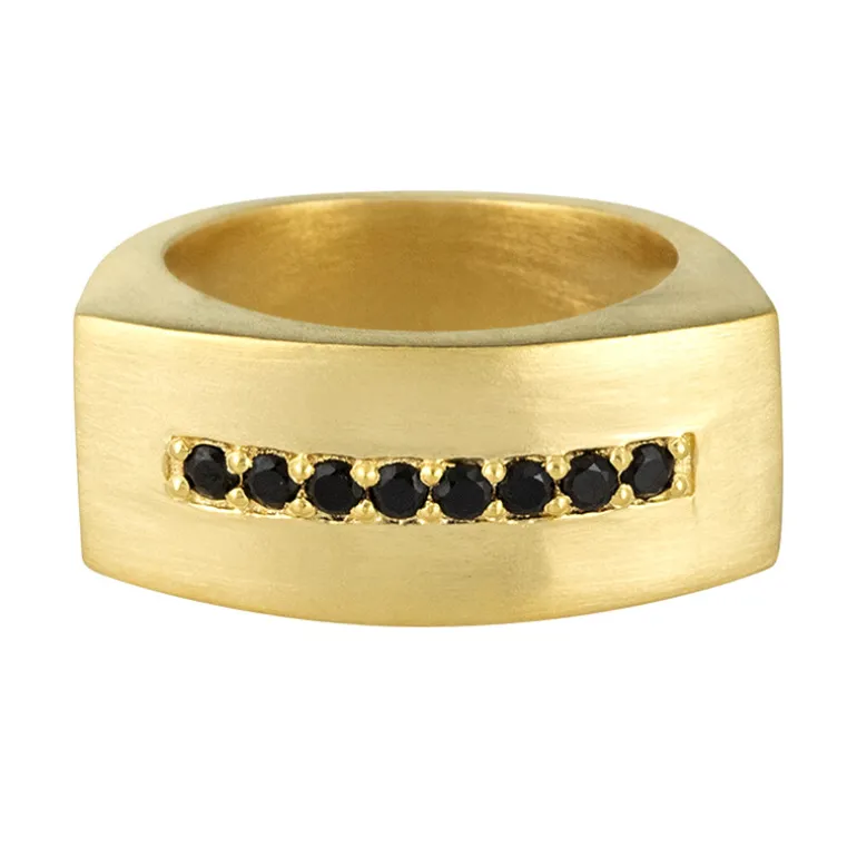 Entdecken Sie den kühnen Kontrast von acht glänzenden schwarzen Spinellen aus Madagaskar, eingefasst in ein elegantes Band aus vergoldetem 925er Sterlingsilber. Dieser Statement-Ring aus der MONOSONO COLLECTION besticht mit einem Gesamtgewicht von 0,304 Karat, wobei jeder Stein im Präzisionsschliff geschliffen wurde, um seinen tiefen Farbton und sein Funkeln zu betonen. Die robuste plattierte Oberfläche sorgt für dauerhaften Glanz und macht diesen 24×21 mm großen Ring zu einer vielseitigen Ergänzung Ihrer Kollektion. Kombinieren Sie ihn mit einem klassischen kleinen schwarzen Kleid oder einem schicken Business-Anzug für einen Hauch von Raffinesse.