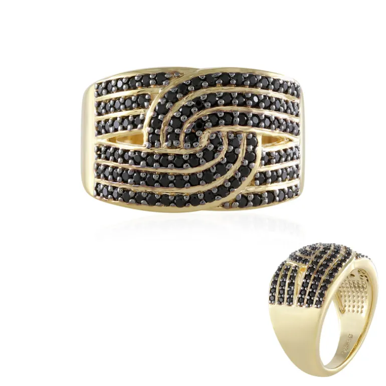 Entdecken Sie die Faszination von 110 schwarzen Spinellen aus Madagaskar, die fachmännisch in diesen atemberaubenden Ring aus vergoldetem 925er Sterlingsilber gefasst sind. Mit einem Gewicht von 6,12 g verleiht das filigrane Design jedem Outfit einen Hauch von Eleganz. Dieser Ring eignet sich perfekt für einen Abend im Freien oder für ein gewagtes Statement zu Ihrer Alltagskleidung und ergänzt sowohl legere als auch formelle Looks mit seinem schicken und raffinierten Stil.