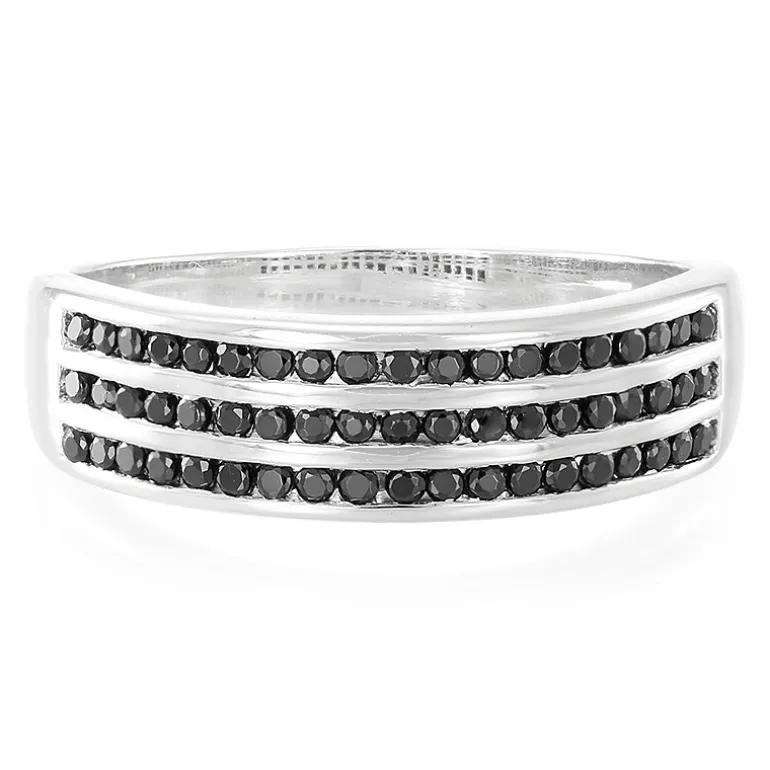 Entdecken Sie die Anziehungskraft des Nachthimmels in Form eines Bandes mit diesem raffinierten Ring aus Sterlingsilber mit 57 schwarzen Spinellen im Brillantschliff aus Thailand. Jeder Stein ist sorgfältig gefasst, um ein schlankes, mehrstufiges Design zu schaffen, das sich elegant um Ihren Finger schmiegt. Mit einem Gesamtkaratgewicht von 0,63 ct kombiniert dieser Ring den Glanz von 925er Sterlingsilber mit der Tiefe der Spinelle. Er ist ein vielseitiges Schmuckstück, das sich sowohl für legere als auch für formelle Anlässe eignet und jedem Outfit einen Hauch von Geheimnis verleiht. Ob bei einer Dinnerparty oder einem Geschäftstreffen, mit diesem Ring unterstreichen Sie Ihren raffinierten Geschmack.