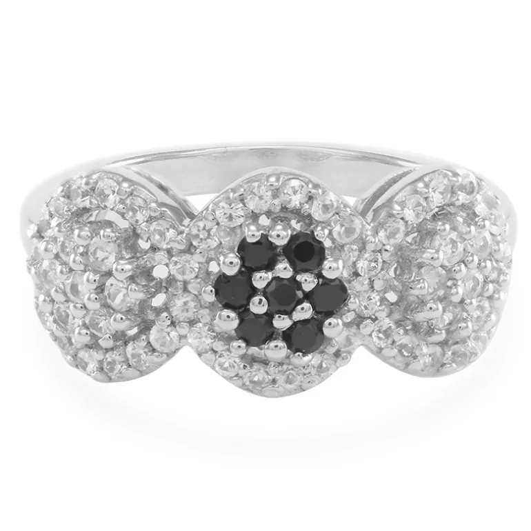 Schicker Schwarzer Spinell & Weißer Saphir Silber Ring