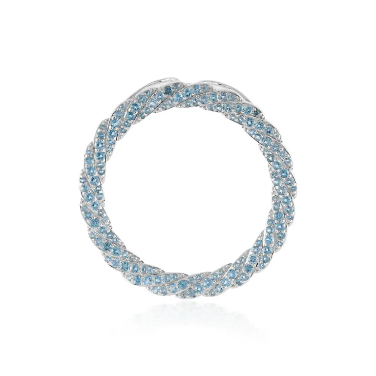Entdecken Sie das Strahlen des Schweizer Blautopas mit diesem auffälligen Anhänger. Jeder der 138 rund geschliffenen Topase mit einem Gesamtgewicht von 5,403 Karat ist sorgfältig in hochwertiges 925er Sterlingsilber gefasst und wiegt etwa 7,01 Gramm. Mit seinen beeindruckenden Maßen von 50 x 50 mm erzeugt das ineinander verwobene Design ein faszinierendes Lichtspiel, das sich perfekt eignet, um sowohl legere als auch formelle Outfits mit einem Hauch von Funkeln zu versehen. Dieses exquisite Stück aus der MONOSONO COLLECTION ist ein Beweis für handwerkliches Können und zeitlosen Stil.