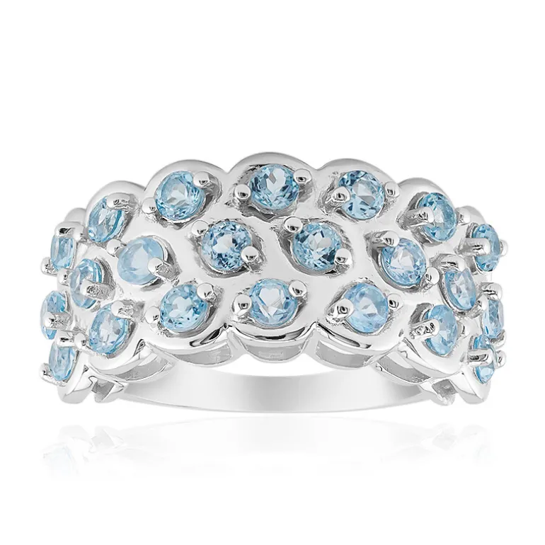 Schmücken Sie Ihre Hand mit der schimmernden Eleganz dieses Swiss Blue Topaz Silberrings. Mit 22 brillanten Topasen im Rundschliff aus Brasilien, jeder 2,5 mm groß, bietet dieses Stück eine schillernde Darstellung von Farbe und Funkeln. Der aus 925er Sterlingsilber gefertigte Ring ist sowohl stilvoll als auch langlebig. Er eignet sich perfekt, um im Alltag oder zu besonderen Anlässen einen Farbakzent zu setzen.