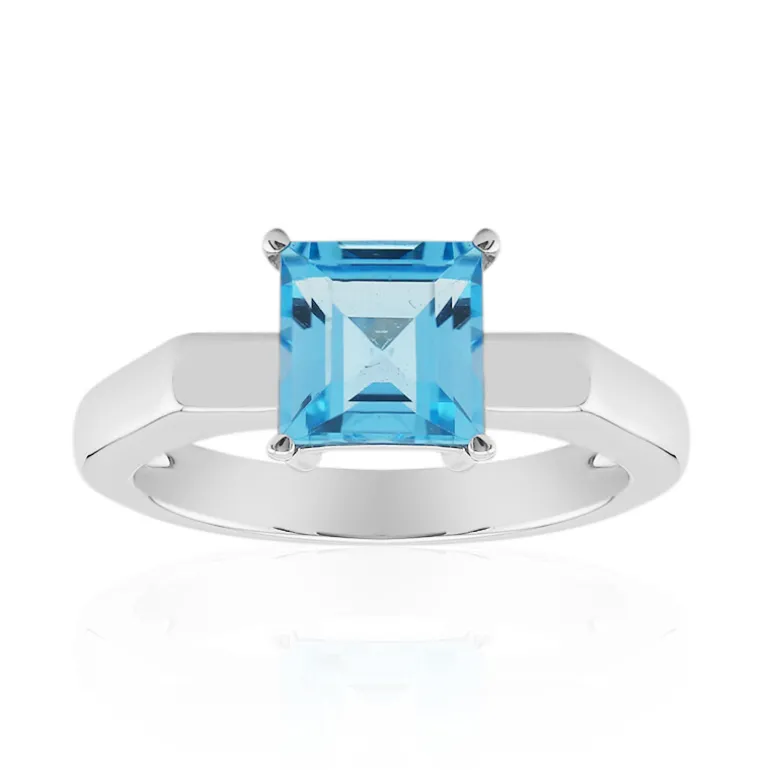 Schweizer Blautopas Ring mit Quadratschliff aus Sterlingsilber, 1,15ct Brasilien