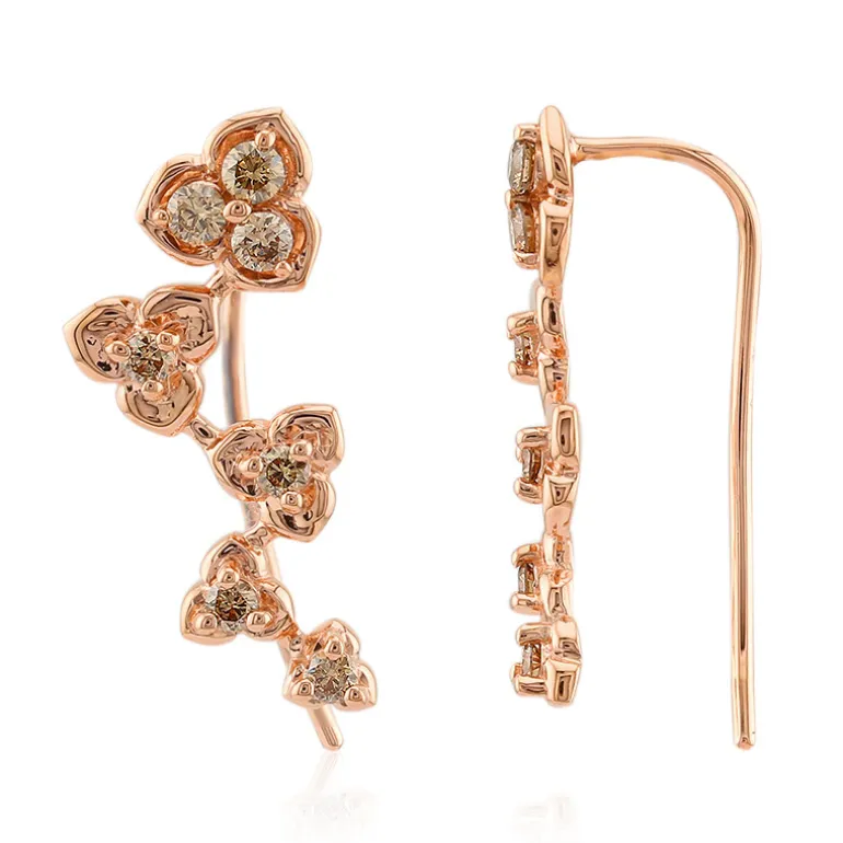 Diese auffälligen Ohrringe zeigen ein zartes Blumenmotiv mit sechs SI1 Argyle Rose de France-Diamanten von insgesamt 0,24 ct. Ergänzt durch acht weitere SI1-Diamanten derselben Herkunft und desselben Schliffs wiegen diese Kostbarkeiten aus 9 Karat Roségold etwa 2,6 g. Mit ihrer spiralförmigen Länge von 24 mm ist ihr einzigartiges Design perfekt geeignet, um Ihren Look bei anspruchsvollen Veranstaltungen zu akzentuieren oder einen Hauch von Eleganz in den Alltag zu bringen.