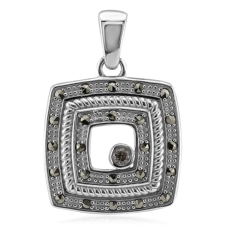 Entdecken Sie die Faszination dieses geometrisch inspirierten Anhängers mit einem 0,058 ct SI1 Rose de France Diamanten aus der renommierten Argyle-Mine, der von 24 funkelnden österreichischen Marcasiten von insgesamt 0,312 ct umgeben ist. Der Anhänger aus glänzendem 925er Sterling Silber mit einem Gewicht von ca. 4,85 g bietet ein herrliches Spiel von Licht und Schatten. Die Silhouette des Anhängers mit den Maßen 28 x 19 mm setzt ein kühnes Statement und bewahrt gleichzeitig einen Hauch von klassischer Raffinesse. Dieser Anhänger ist eine exquisite Ergänzung sowohl für das tägliche Tragen als auch für die Abendgarderobe und verkörpert die Essenz der raffinierten Eleganz.