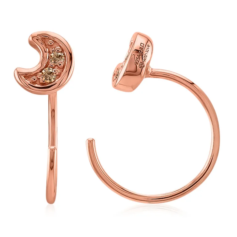 Diese einzigartig gestalteten, halbmondförmigen Ohrringe mit 0,036 ct SI1 Argyle-Rose de France Diamanten aus Australien sorgen für Raffinesse. Gefertigt aus 925er Sterlingsilber und großzügig mit leuchtendem Roségold überzogen, besitzen diese Ohrringe einen subtilen Schimmer, der perfekt für den Übergang von Tag zu Abend ist. Kombinieren Sie sie mit einer schicken Bluse für die Arbeit oder einem Cocktailkleid für einen Abend, damit Sie in jeder Situation Eleganz ausstrahlen.