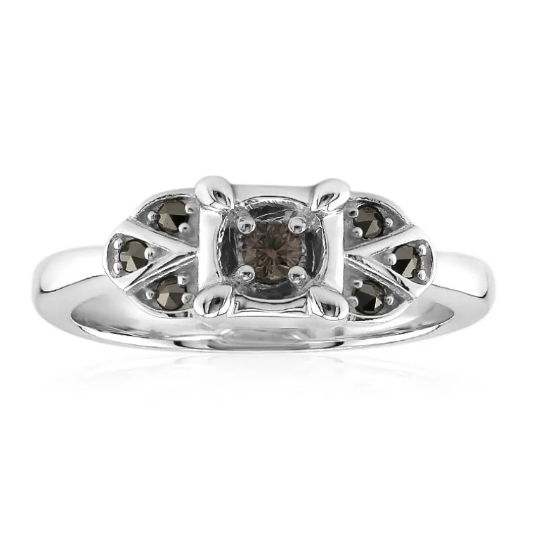 Schicker Argyle Rose de France & Markasit Silber Ring, 0,136ct TW