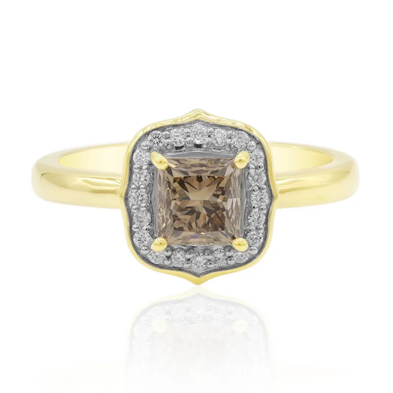 Dieser Ring ist ein wahrer Schatz aus Down Under: Ein atemberaubender Argyle-Schokoladen-Diamant von 0,867 Karat aus Australien, eingebettet in eine luxuriöse Fassung aus 18 Karat Gelbgold. Der auffällige Princess-Schliff betont den bezaubernden Farbton des Steins, der durch 20 runde Diamanten mit Brillantschliff SI2 H ergänzt wird, die ihm einen Hauch von Funkeln verleihen. Mit einem Gesamtkaratgewicht von 0,952 ct ist dieser Ring ein Highlight für besondere Anlässe oder das perfekte Geschenk. Kombinieren Sie ihn mit einem eleganten Abendkleid oder einem raffinierten Business-Ensemble, um jeden Look aufzuwerten.