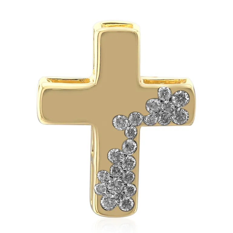 Entdecken Sie das göttliche Funkeln dieses atemberaubenden Anhängers aus 9 Karat Gold, der den Glauben mit Eleganz repräsentiert. Insgesamt 21 Diamanten der Reinheit SI1 mit einem Gesamtgewicht von 0,414 Karat zieren dieses Schmuckstück in einer zeitlosen Kreuzsilhouette von 23 x 19 mm. Jeder Stein im Brillantschliff fängt das Licht ein und sorgt für ein strahlendes Leuchten. Dieses Schmuckstück ist ein ideales Accessoire oder ein Geschenk, das von Herzen kommt, und passt sowohl zu Ihrem Sonntagsoutfit als auch zu Ihrer Alltagskleidung.