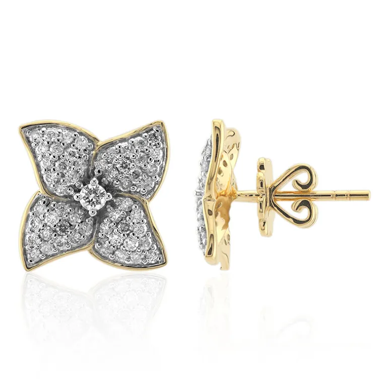 Entdecken Sie die Eleganz der Natur mit diesen schicken Schmetterlingsohrringen mit 106 funkelnden Diamanten der Reinheit SI1 von insgesamt 0,76 Karat, gefasst in glänzendem 14-karätigem Gold. Jeder Ohrring bietet ein atemberaubendes visuelles Spiel mit rund geschliffenen Brillanten von ca. 2,2 mm und 1,1 mm Größe, die Ihnen bei jeder Bewegung einen zarten Schimmer verleihen. Mit einem Goldgewicht von ca. 4,1 Gramm und einer Größe von 16 mm sind sie die perfekten Schmuckstücke für den Tag und den Abend. Kombinieren Sie sie mit Ihrem Lieblingscocktailkleid oder einer klassischen Bluse für einen Hauch von raffinierter Schönheit bei jeder Veranstaltung.