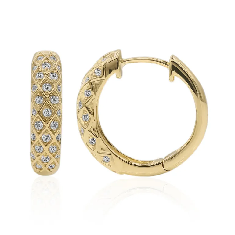 Diese exquisiten Reif-Ohrringe sind mit SI1-Diamanten in glänzendem 9K-Gold gefasst. Mit einem Gesamtkaratgewicht von 0,442 ct bieten sie ein brillantes Funkeln, das sich perfekt für Abendveranstaltungen oder zur Aufwertung von Alltagsoutfits eignet. Das verschlungene Diamantmuster verleiht ihnen einen Hauch von Eleganz und macht sie zu einem zeitlosen Accessoire für jede Schmucksammlung. Kombinieren Sie sie mit einem eleganten Kleid für einen raffinierten Look.