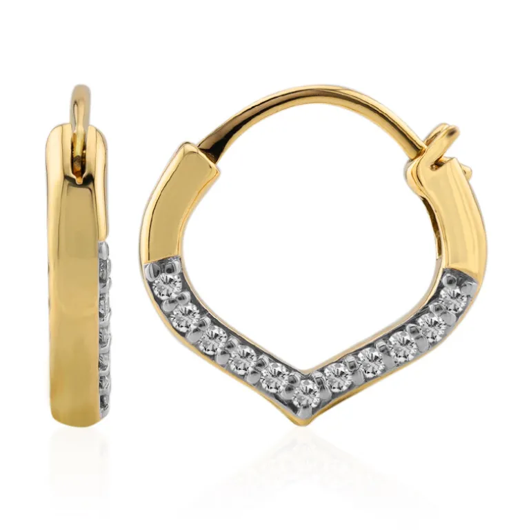 Entdecken Sie die strahlende Schönheit unserer Ohrringe aus 9-karätigem Gelbgold, die mit 22 funkelnden Diamanten der Reinheit SI1 geschmückt sind. Jeder Edelstein im Brillantschliff ergänzt das zeitlose Design mit einem Gesamtgewicht von 0,17 Karat und sorgt für ein luxuriöses Finish. Der subtile Kontrast zwischen dem polierten Gold und den schimmernden Diamanten schafft ein elegantes Schmuckstück, das sich sowohl für den Alltag als auch für besondere Anlässe eignet. Diese exquisiten Ohrringe verleihen Ihrem Ensemble einen Hauch von Raffinesse.