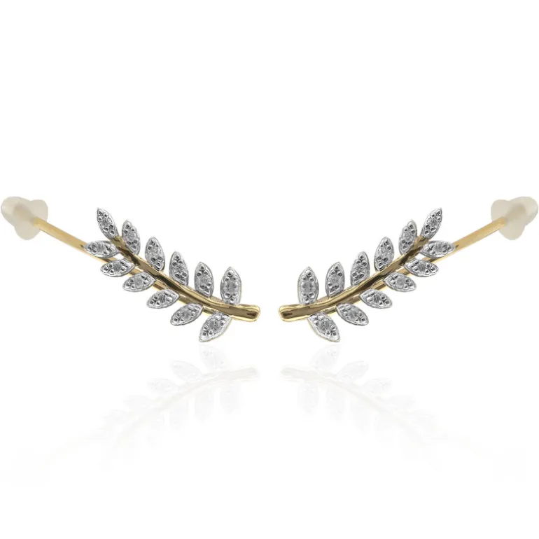 Diese exquisiten Ohrringe präsentieren ein zartes Blattdesign, gefertigt aus glänzendem 9K-Gold und geschmückt mit funkelnden Diamanten im Brillantschliff SI1 (G) von insgesamt 0,146 Karat. Die filigrane Anordnung der 24 Diamanten vermittelt den Eindruck natürlicher Eleganz und verleiht jedem Ensemble einen Hauch von Raffinesse. Diese Ohrringe eignen sich sowohl für den Alltag als auch für besondere Anlässe und sind ein zeitloses Accessoire, das das Licht wunderbar einfängt. Ergänzen Sie Ihre Berufskleidung oder werten Sie ein Abendkleid mit diesen anmutig geformten Stücken auf.