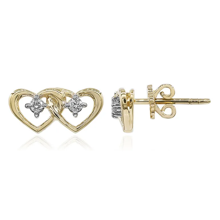 Wir präsentieren ein Paar exquisite Diamantohrringe aus 9K Gold. Mit rundem Brillantschliff präsentieren diese Ohrringe insgesamt 0,116 ct SI1 (G) Diamanten, die elegant in ein Herzdesign gefasst sind. Sie eignen sich perfekt, um jedem Ensemble einen Hauch von Raffinesse zu verleihen, und sind sowohl für legere Ausflüge als auch für elegante Abende geeignet, damit Sie bei jeder Gelegenheit glänzen.
