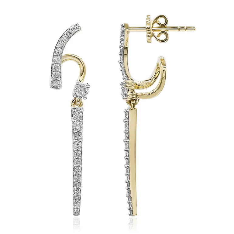 Entdecken Sie die Eleganz dieser Diamant-Ohrringe aus Gold. Sie sind aus 375er Gold gefertigt und bestehen aus insgesamt 0,518 Karat strahlenden SI1 (G) Diamanten im Brillantschliff. Diese Ohrringe mit einer Größe von 34 mm eignen sich sowohl für formelle Anlässe als auch für Ihren Alltagslook und strahlen einen raffinierten Charme aus. Kombinieren Sie sie mit einem eleganten Abendkleid oder einer schicken Bluse für eine raffinierte Ausstrahlung.
