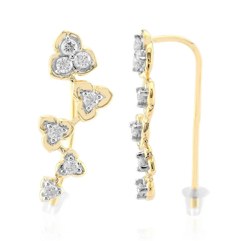 Entdecken Sie den strahlenden Charme unserer 0,48ct Diamond Floral Earrings, die in glänzendem 9K Gold gefertigt wurden. Jeder Ohrring ist mit funkelnden SI1 (G) Diamanten verziert, die in einem reizvollen floralen Muster angeordnet sind, das elegant kaskadenförmig verläuft. Mit einem Gewicht von ca. 2,6 Gramm schwingen diese Ohrringe sanft mit jeder Ihrer Bewegungen mit und ziehen das Licht und die Aufmerksamkeit auf sich. Sie eignen sich perfekt, um Ihrer Abendgarderobe einen Hauch von Raffinesse zu verleihen oder Ihren Tageslook aufzuwerten. Sie sind eine vielseitige Ergänzung für jede Schmucksammlung.