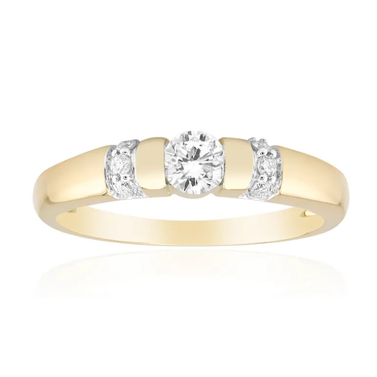 Dieser exquisite Diamantring aus Gold ist die perfekte Mischung aus Eleganz und Raffinesse. Mit einem zentralen SI1-Diamanten im Brillantschliff, der von sechs kleineren Diamanten ergänzt wird, hat dieser Ring ein Gesamtkaratgewicht von 0,281 ct. Gefertigt aus 375er Gold ist er luxuriös und zeitlos zugleich. Er eignet sich sowohl für den eleganten Alltag als auch für besondere Anlässe und lässt sich sowohl mit formellen als auch mit legeren Outfits wunderbar kombinieren.