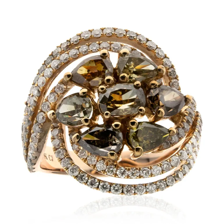 Schicker 2,49ct Fancy Diamant 18K Rose Gold Ring, 7,94g