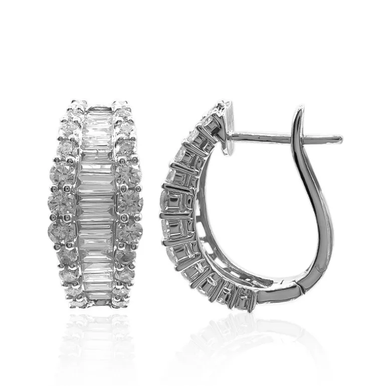 Diese von CIRARI entworfenen Ohrringe schimmern vor Raffinesse und sind mit 32 Diamanten im Baguetteschliff und 44 Diamanten im runden Brillantschliff SI2 (H) von insgesamt 1,89 Karat besetzt. Gegossen in ca. 4,12 Gramm hochwertigem 14-karätigem Weißgold, strahlen diese Ohrringe Eleganz aus. Sie eignen sich perfekt für Galaveranstaltungen oder verleihen einem Business-Ensemble einen Hauch von Glamour und lassen sich bequem mit einer Scharnierrückseite befestigen.